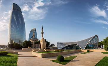 «Огненные башни»: Этот впечатляющий трехъярусный комплекс небоскребов в форме пламени виден из самых отдаленных районов города и расположен рядом с Переулком мучеников, считается достижением современной архитектуры, а также символом стихии огня, которая сделала Баку культовым центром зороастризма. Самый высокий небоскреб достигает 182 м (самый большой в стране), а в комплексе зданий находится один из самых престижных отелей класса люкс в городе, а также торговый центр с кафе, барами и ресторанами изысканной кухни. Когда наступает ночь, их изогнутые фасады освещаются 10 000 светодиодными экранами в цветах национального флага, изображающими движение огня. Лучшее время, чтобы полюбоваться уникальным зрелищем, в идеале со смотровых площадок на прибрежной аллее и Нагорном парке, — это, конечно, вечер. Лучший способ добраться до башен — воспользоваться канатной дорогой с прозрачными кабинками, посадка в которые осуществляется с набережной.