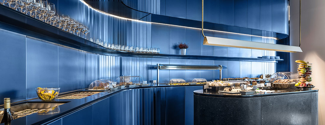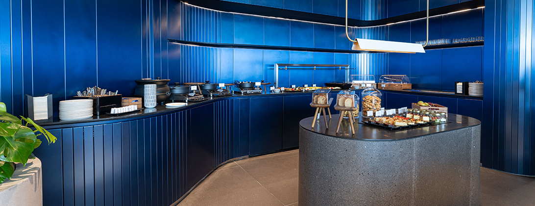Обновленный бизнес-зал AEGEAN в аэропорту Ларнаки предлагает пассажирам уютную атмосферу, в которой они смогут с комфортом отдохнуть и поработать, насладиться чашкой кофе или бокалом вина и попробовать многочисленные блюда и закуски, представленные в богатом меню шведского стола. Используя высококачественные материалы и современные дизайнерские решения, мы превратили пространство площадью 345 кв. метров в островок изысканной роскоши и радушного гостеприимства.