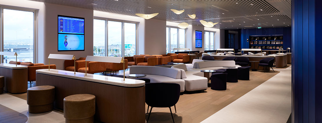 Независимо от места назначения в пределах шенгенской зоны, пассажиры могут расслабиться в стильной зоне отдыха и насладиться ароматным кофе, попробовать богатый выбор блюд шведского стола, предлагаемый в обеденной зоне, или поработать в спокойной обстановке перед вылетом.
